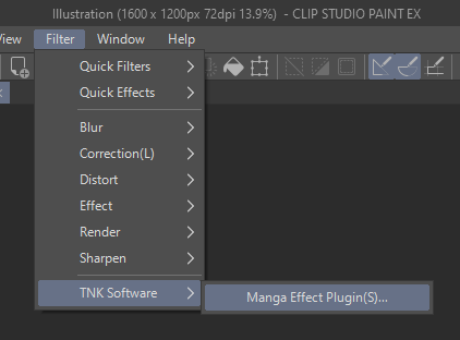 Once the program file is recognized correctly, "TNK Software > Manga Effect Plugin" will be added to the "Filter" menu.